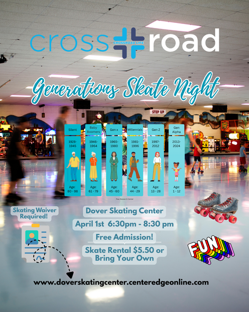 Join us at the Dover Skating Center for Generations Skate Night! All are welcome from the Silent Generation to the Alpha Generation. Come out for a night of fun and represent and show us what you got! Admission is free, however, skate rental is $5.50 or bring your own. Additionally, all skaters must complete a waiver prior to hitting the rink floor. It can be completed on site or online (see link below).