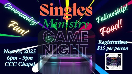 Join us for a night of fun, food, and fellowship in a forum catered to single adults to build community, and strengthen their relationship with Christ.