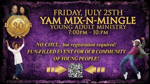 Join our Young Adult Ministry for a night of fun! There will be food, games, & music with DJ Nichols on the 1s & 2s. There will also be an opportunity for you to decide what group event will be featured for the 30th Anniversary YAM Weekend. This is a no cost event, however, registration is required. Bring a friend!